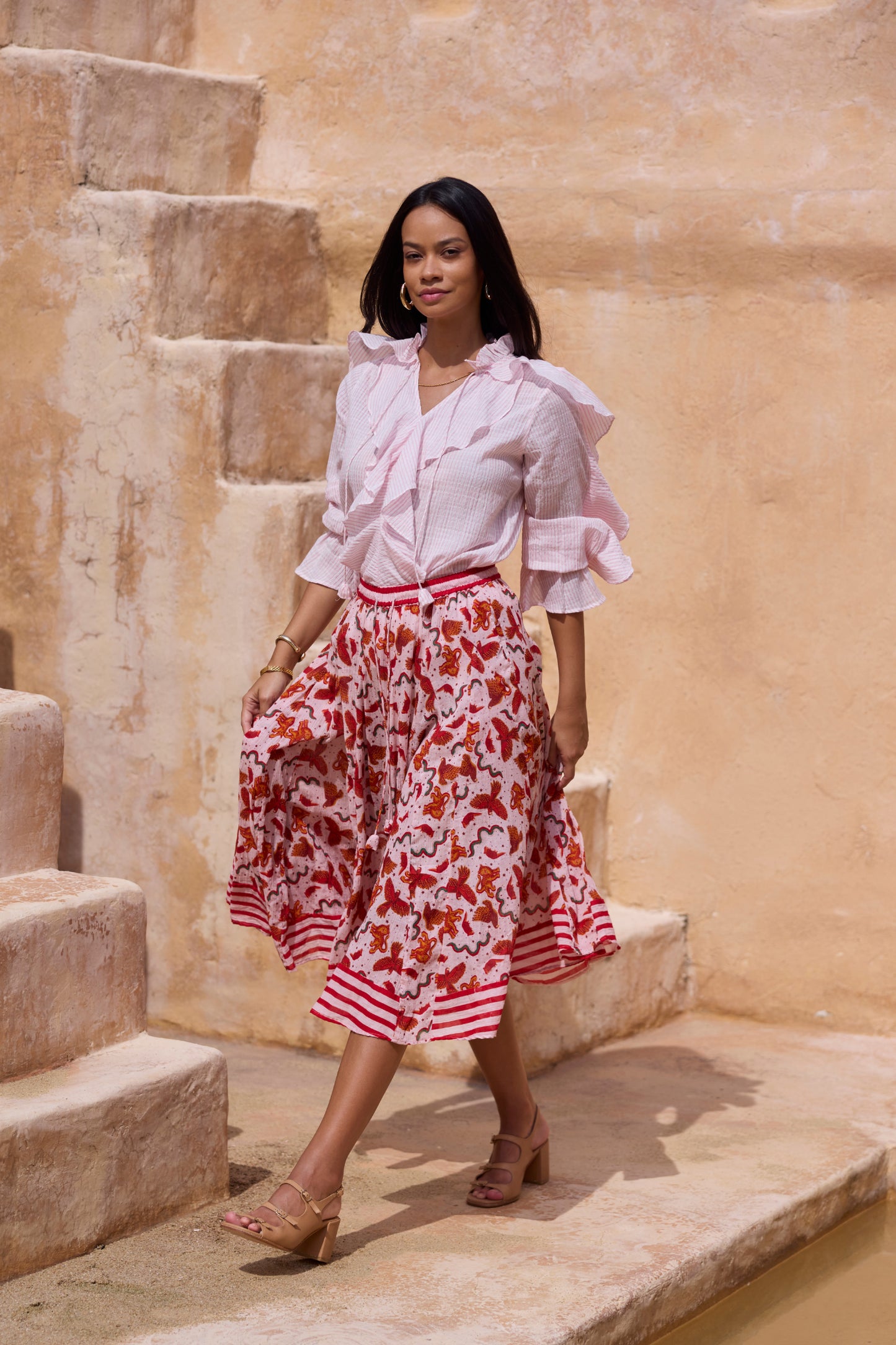 LEYLA L/S RUFFLE BLOUSE STRIPES