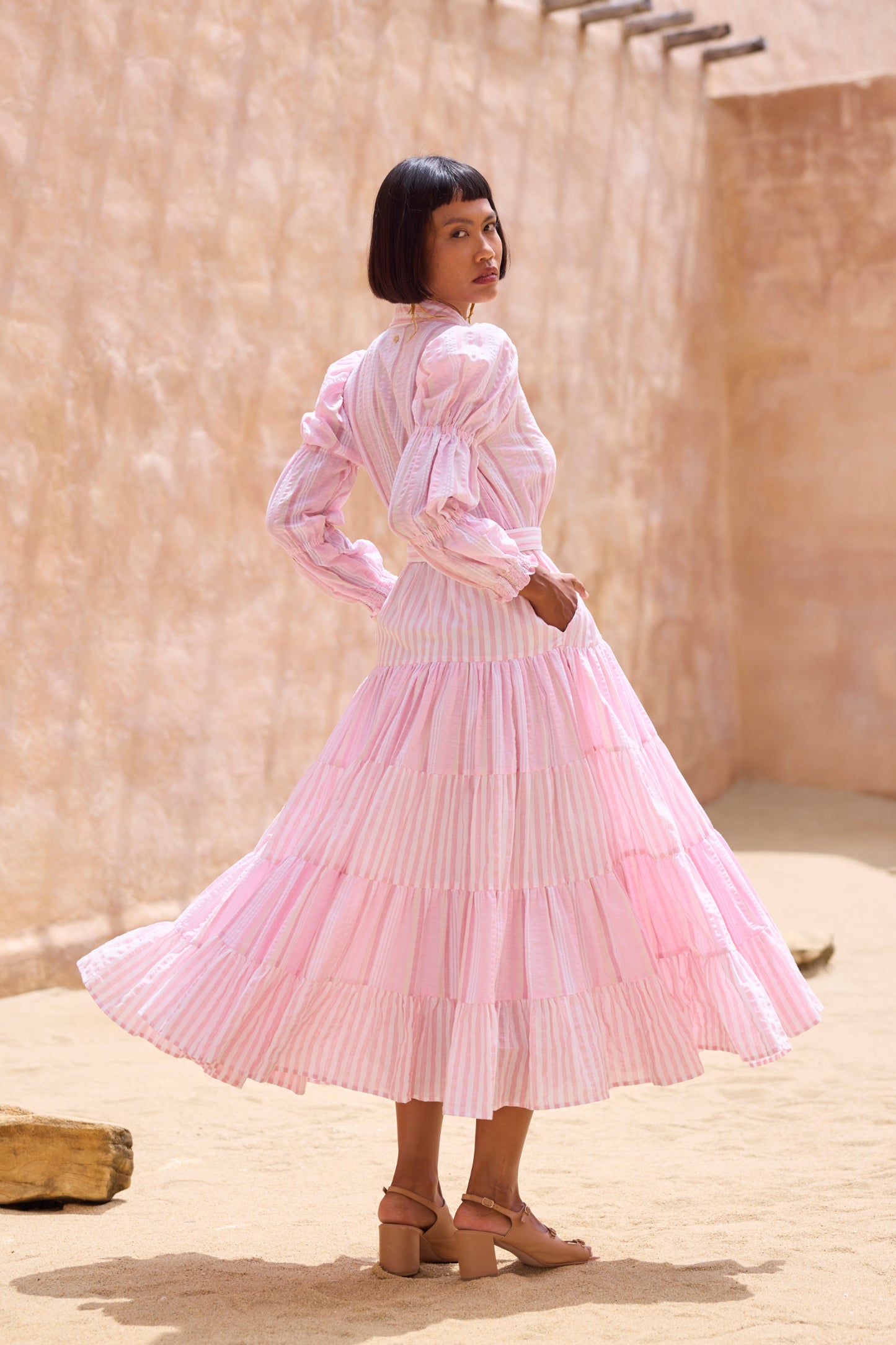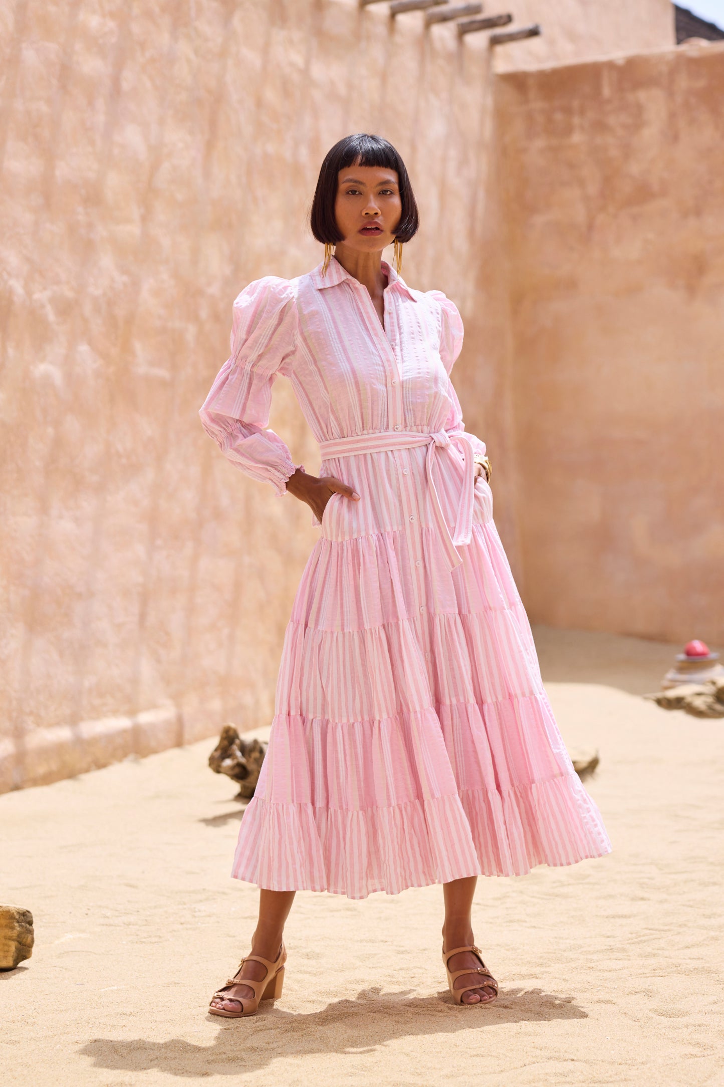 WYNONA L/S MAXI SHIRT DRESS SEERSUCKER BIG STRIPES