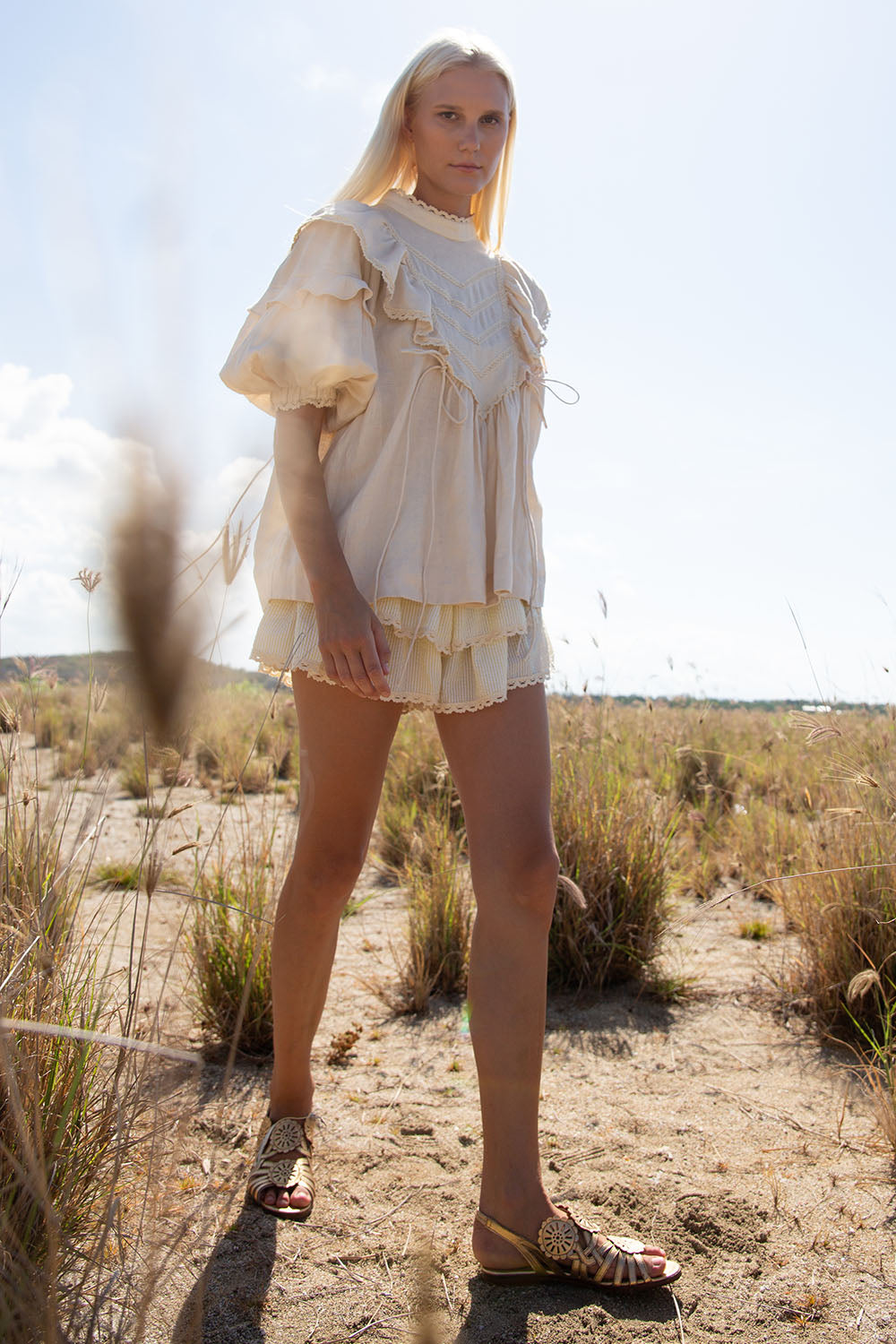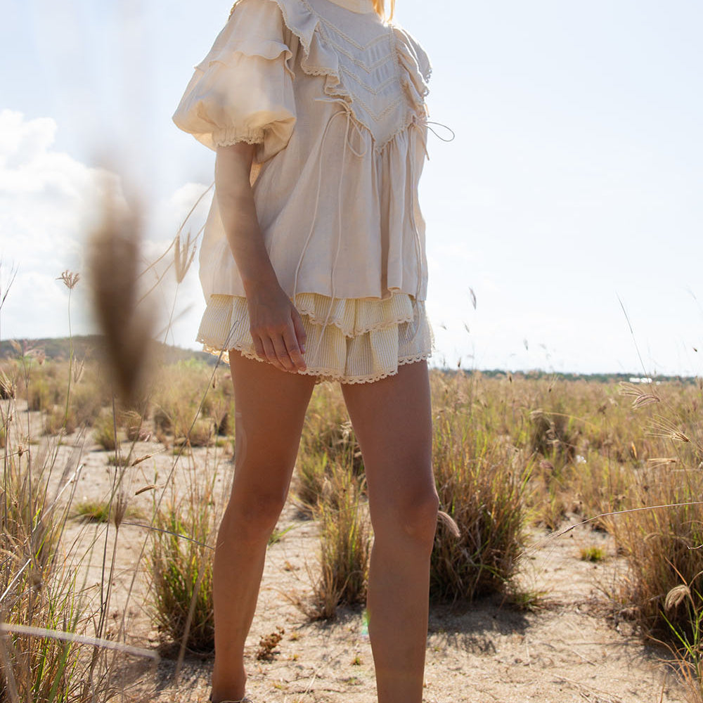 NICO SCALLOP LEMON CANDY TIE DYE TOP
