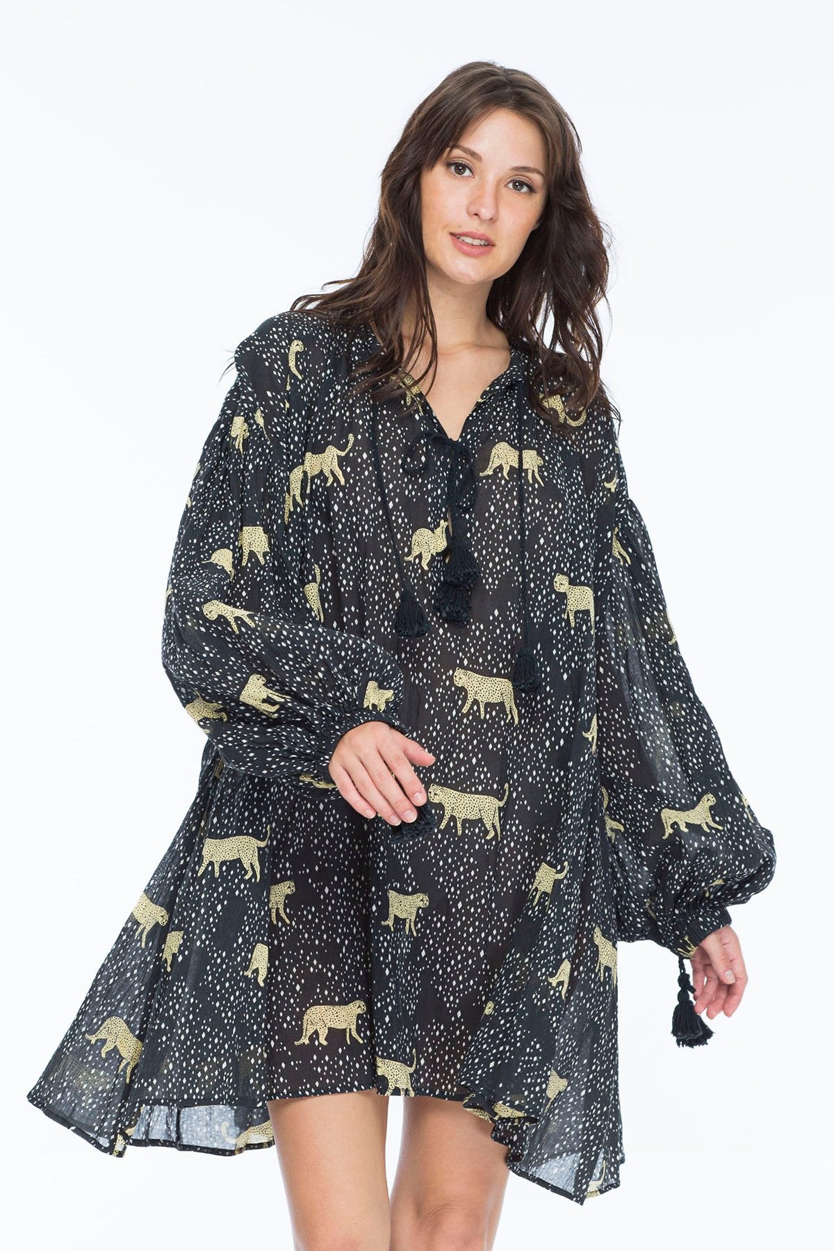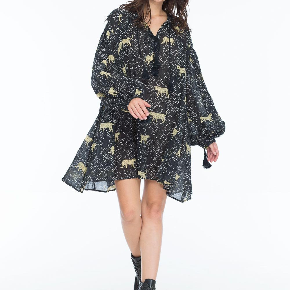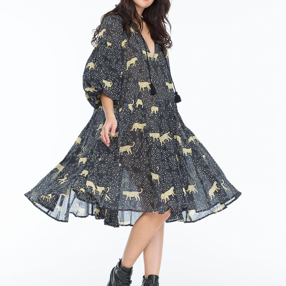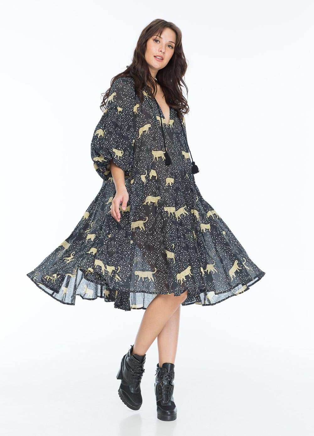 REBECCA DAY DRESS LEOPARD DIAMOND NOIR