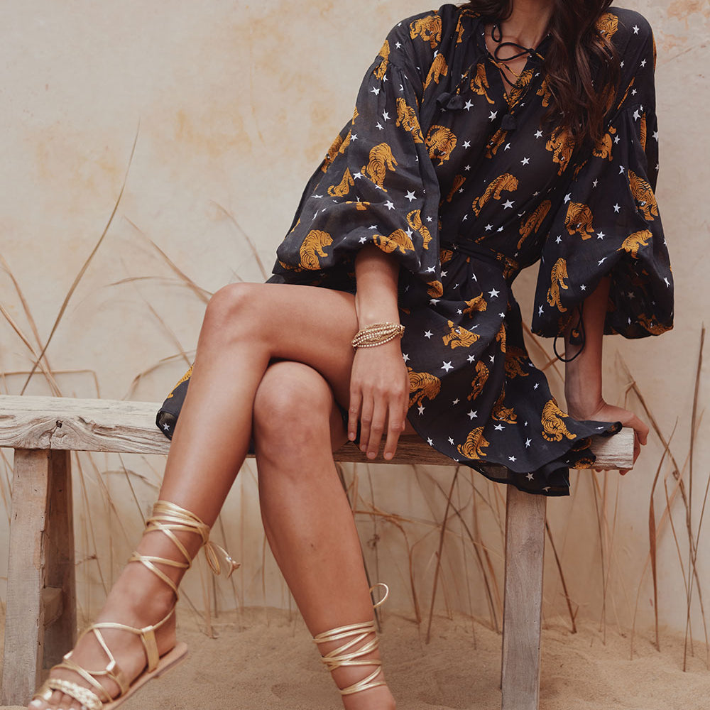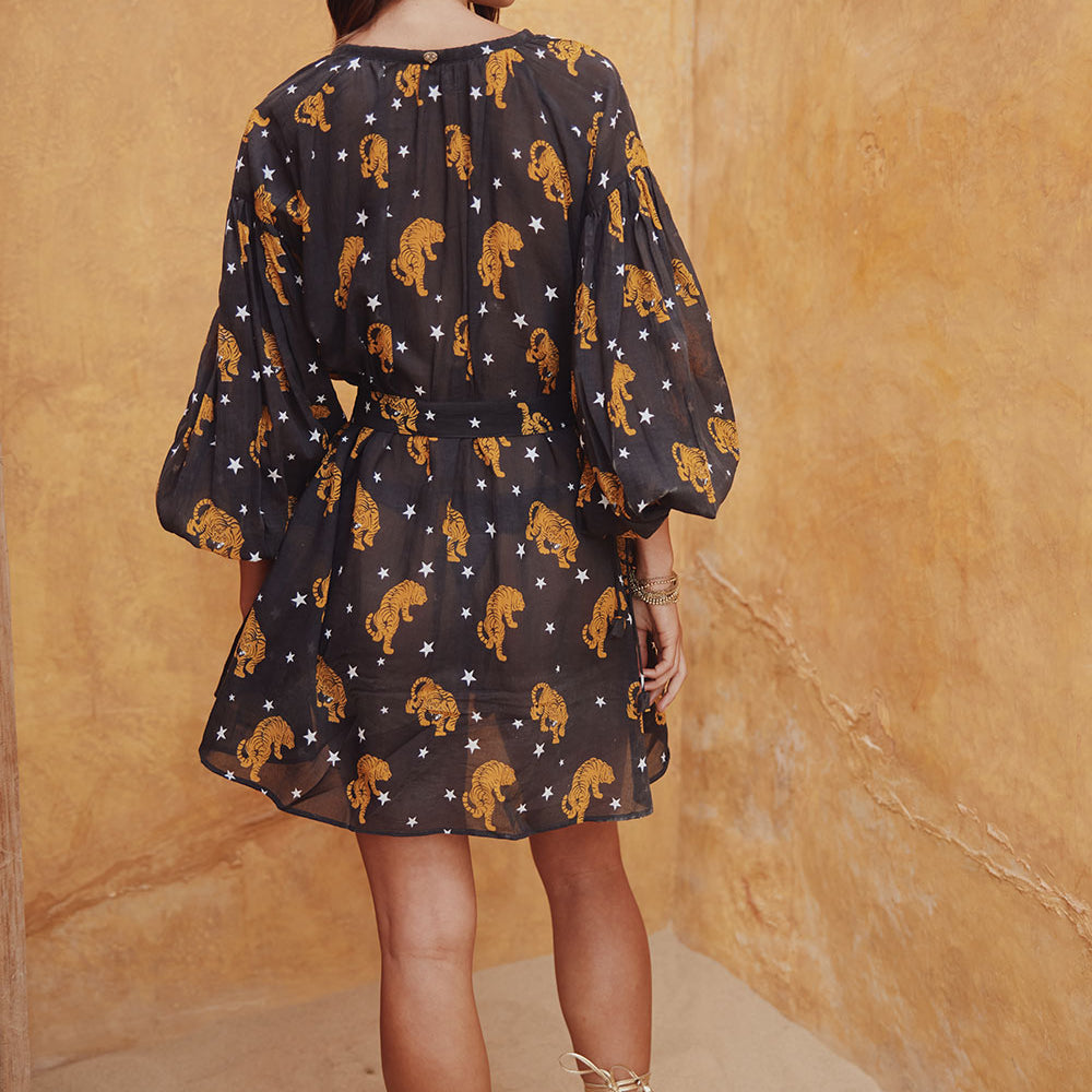 Designed for a loose fit, use the tie to cinch in at the waist