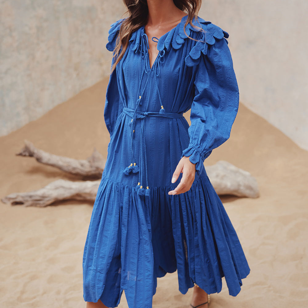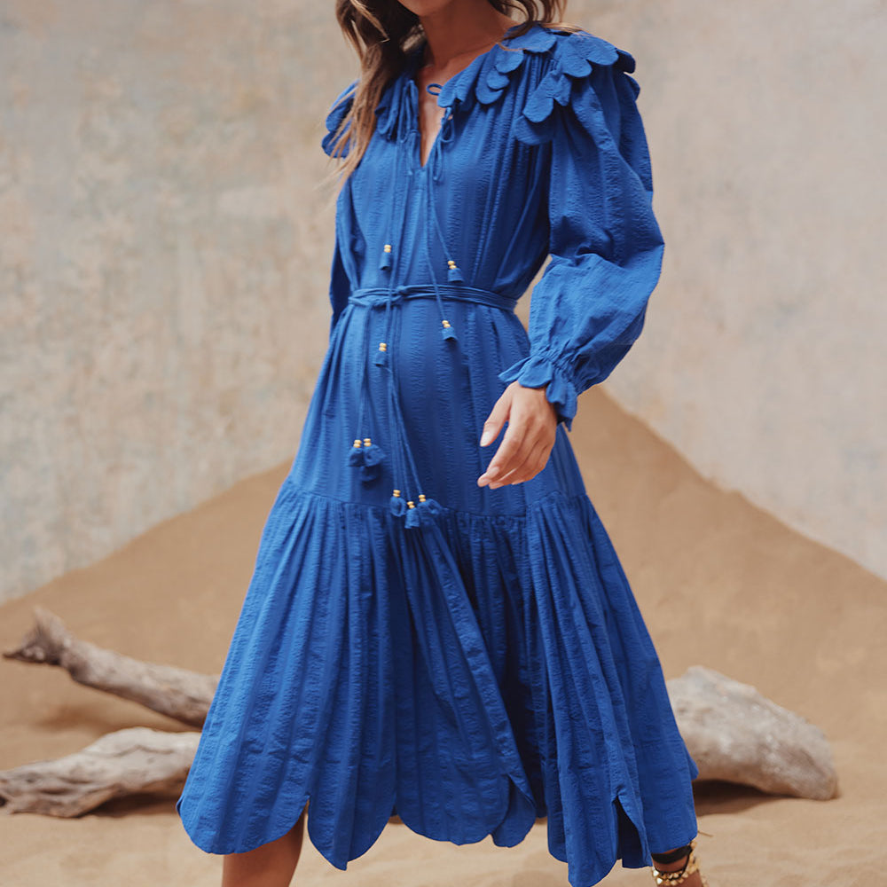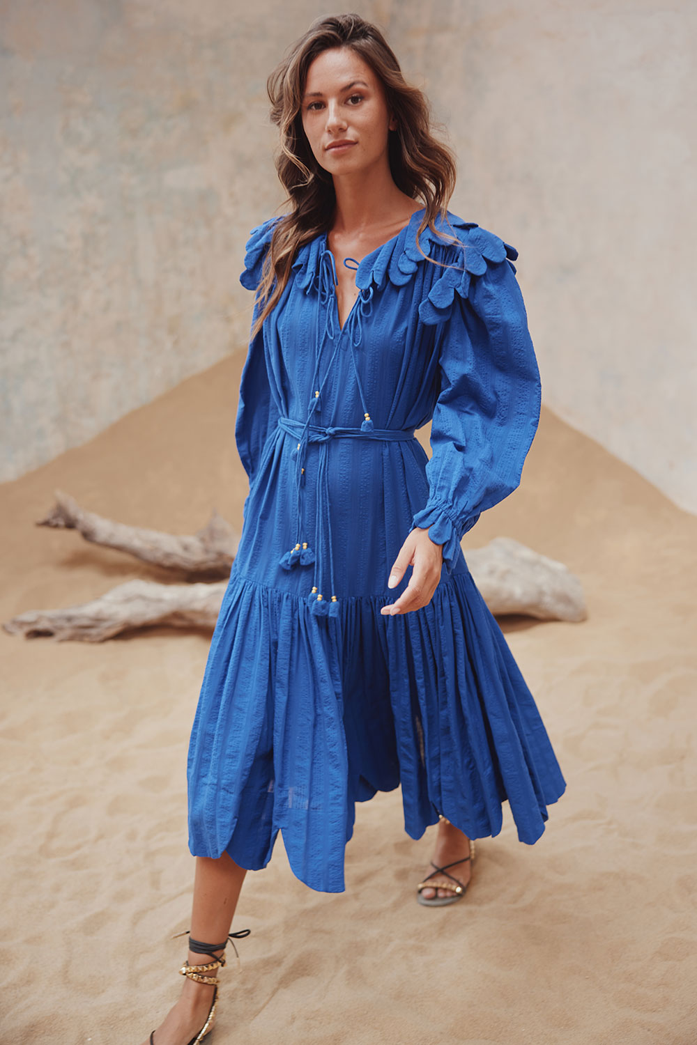 GILIAN SCALLOP MIDI DRESS BLUE SAPPHIRE