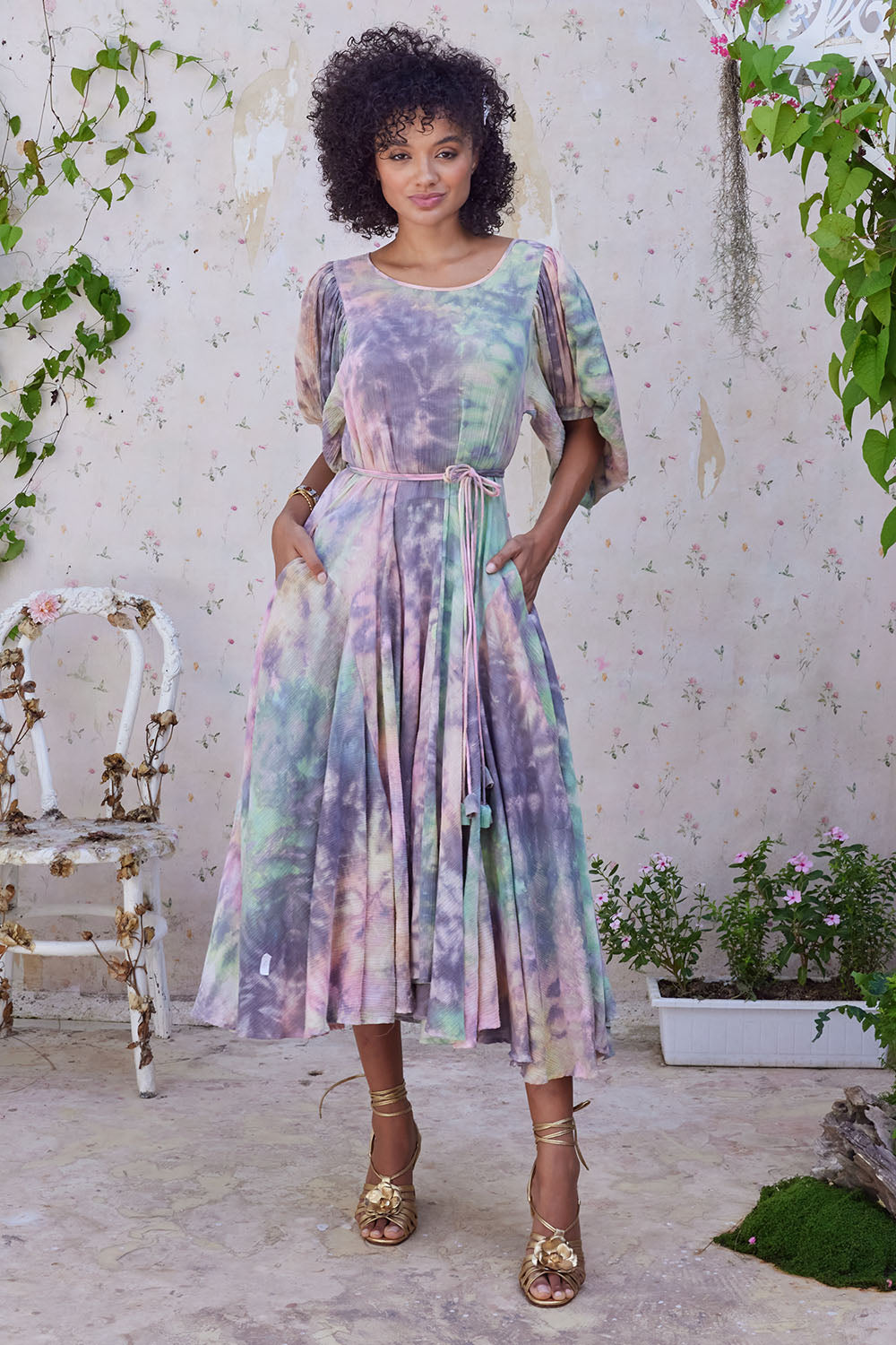 JACQUELINE MIDI DRESS MARBLE TIE DYE